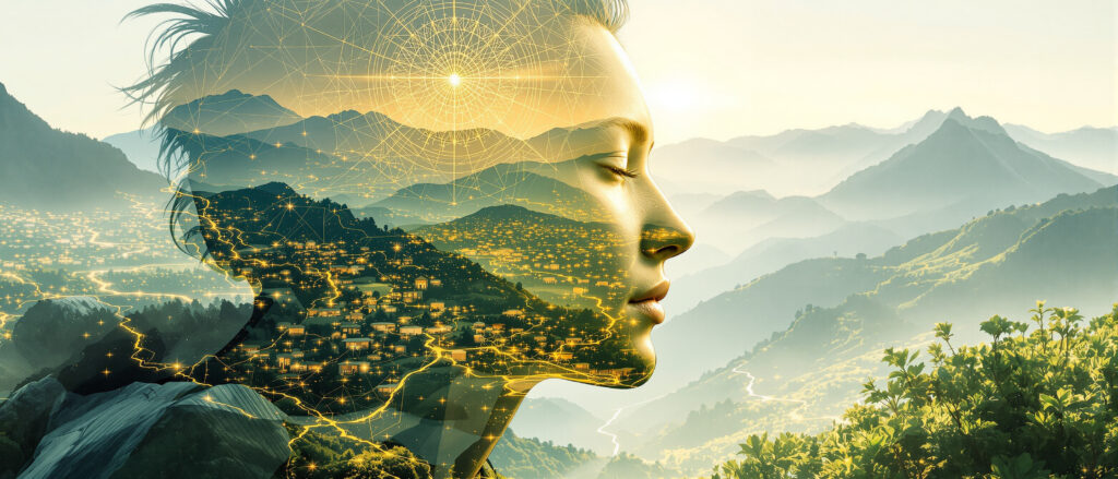 Naše vize stojí na třech branách – Sebepoznání, Poznání a Hojnost – které vedou k probuzení plného potenciálu každého jednotlivce i celé společnosti. Z tohoto základu vyrůstají vědomé komunity a vesnice, které tvoří Síť přítomnosti: organismus Nové Země, kde energie zůstává mezi lidmi a násobí se ve prospěch celku.