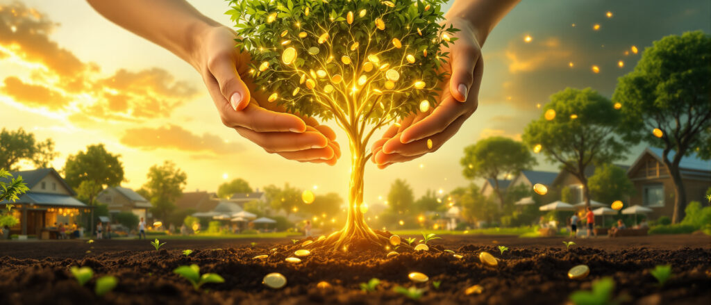 V tradičním systému se investice často mění v čísla, která nemají tvář ani vůni, a jejich růst je spojený s vyčerpáváním lidí i přírody. U nás je to jiné. Každá energie, kterou investor vloží, je jako semínko zasazené do živé půdy. Z něj vyrůstá strom, jehož plody jsou přátelství, čisté vztahy, zdravé prostředí, vzdělané děti, soběstačné komunity a radost ze života. A právě tyto plody investor ochutná jako první – protože se sám stává součástí zahrady, kterou pomohl vytvořit.