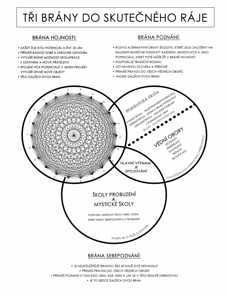 Součástí této brány je také přivedení pravdy a poznání do vzdělávacího systému. Od vědomého početí, porodu, přes dětský věk a základní školy, až po univerzity – vzdělávání se stává cestou probouzení člověka, nikoliv jeho formování v nástroj produkce. V tradičním systému je člověk vychováván jako zdroj energie, času a peněz. V našem modelu je vzdělávání cestou, jak dítě i dospělý objevují svůj potenciál, své dary a tvořivost – a učí se je přinášet ve prospěch celku.